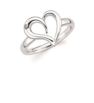 Diva Diamonds® Open Heart Ring In Sterling Silver With .01 Ct. Diamond