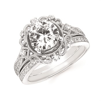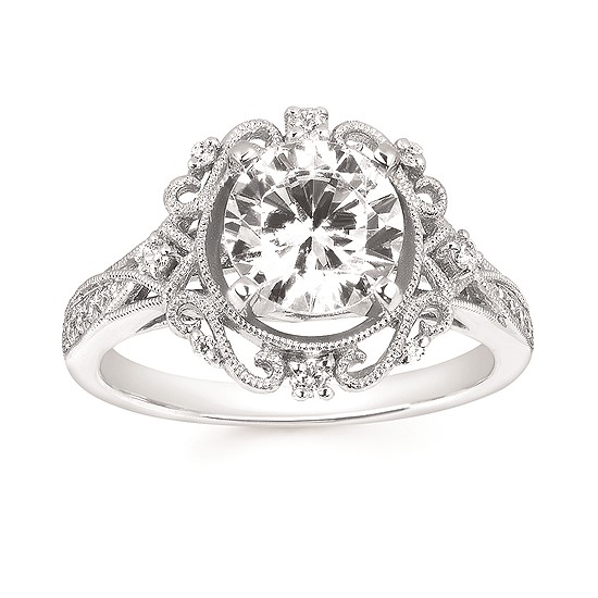 Engagement Ring Forever ElegantĀ® 1/6 Ctw. Diamond Semi Mount shown with 1.50 Ct. Round Center Diamond in 14K Gold