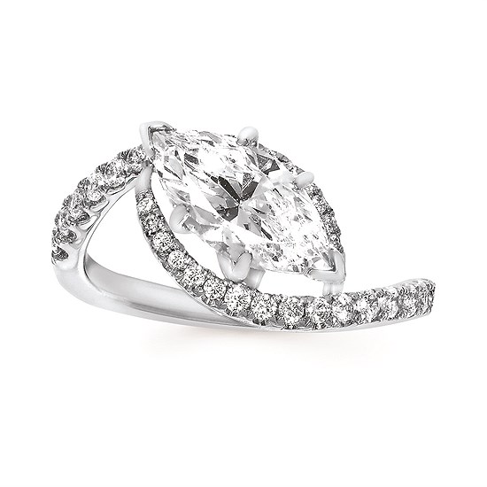 Engagement Ring Forever ElegantĀ® 1/3 Ctw. Diamond Semi Mount shown with 1 1/2 Ct. Marquise Center Diamond in 14K Gold
