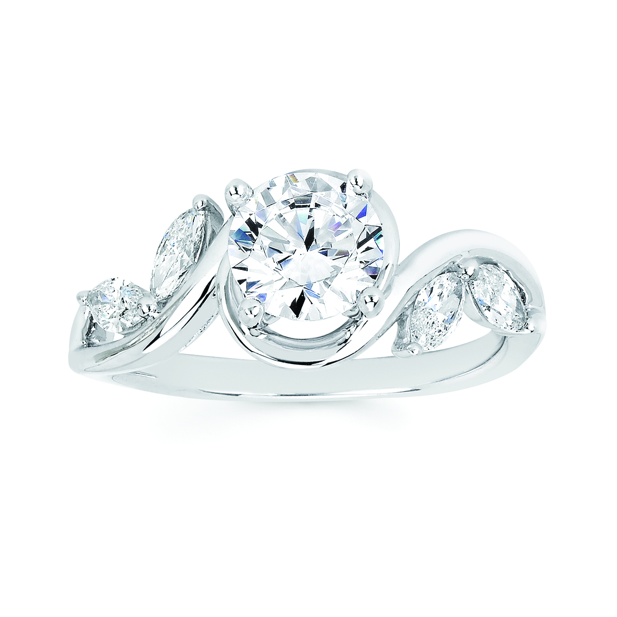 Engagement Ring Vintage Bridal: 1/3 Ctw. Diamond Semi Mount shown with 1 Ct. Round Center Diamond in 14K Gold