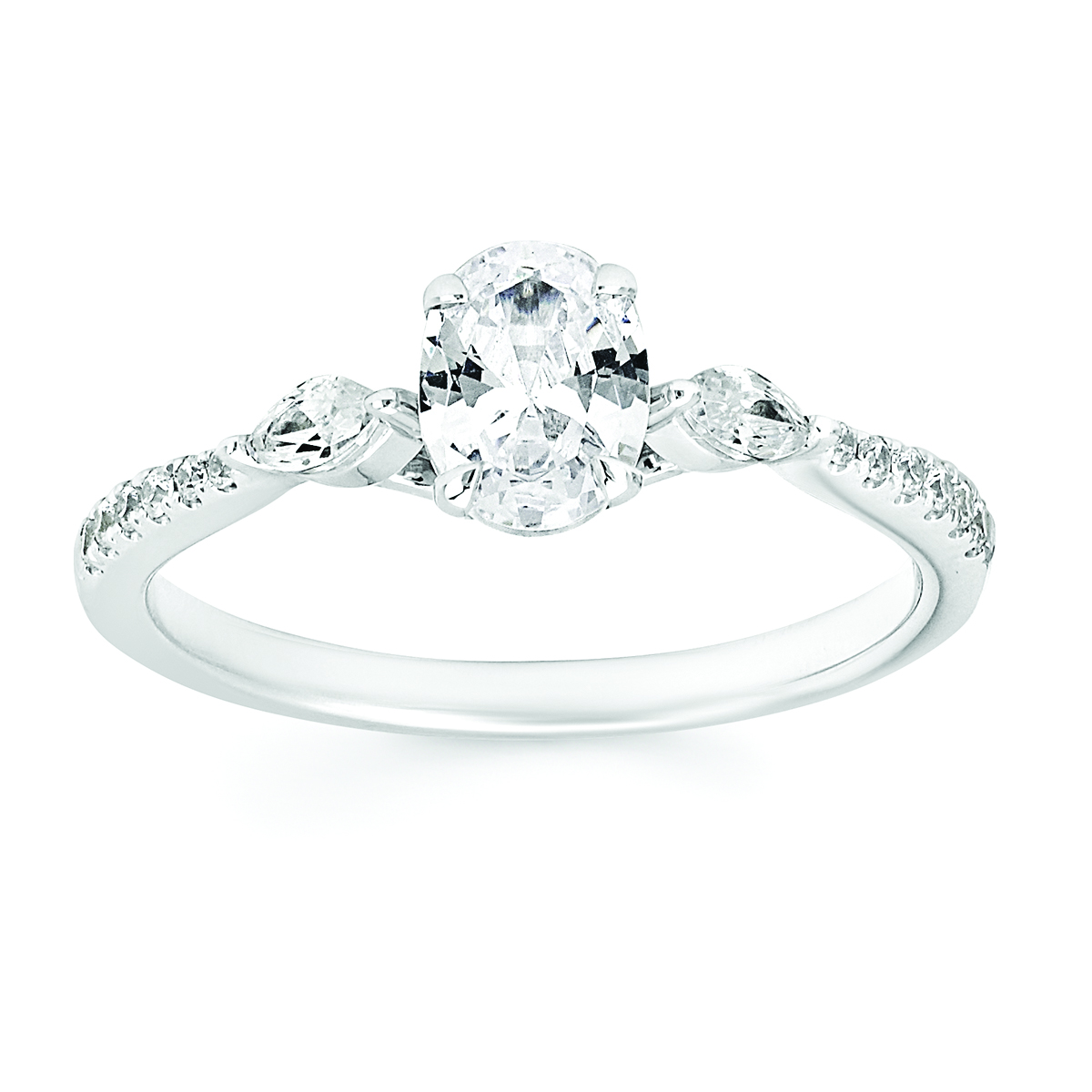Engagement Ring Classic Bridal: 1/4 Ctw. Diamond Semi Mount shown with 1/2 Ct. Oval Center Diamond in 14K Gold